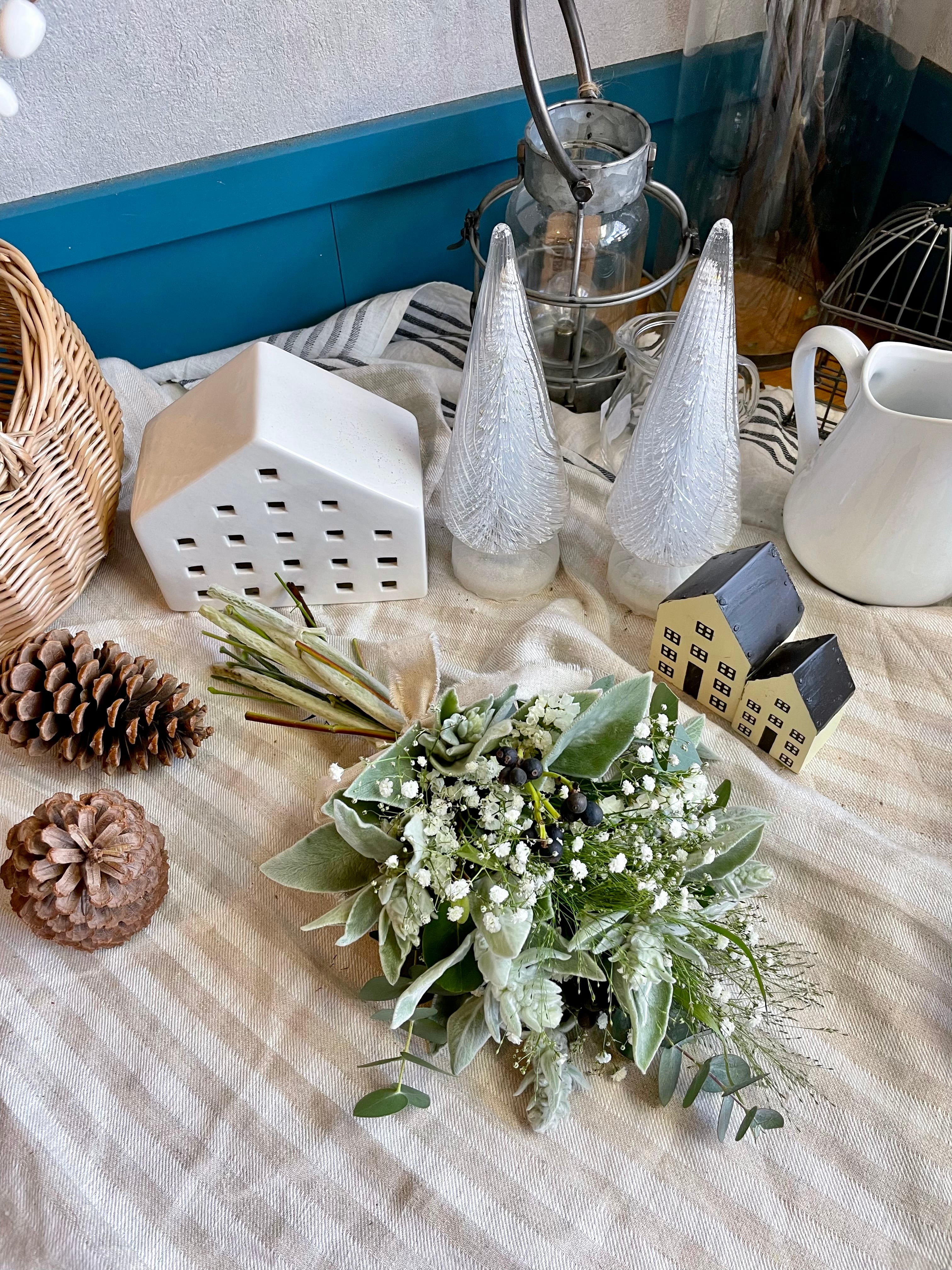 ラムズイヤー、かすみ草、スモークグラス、