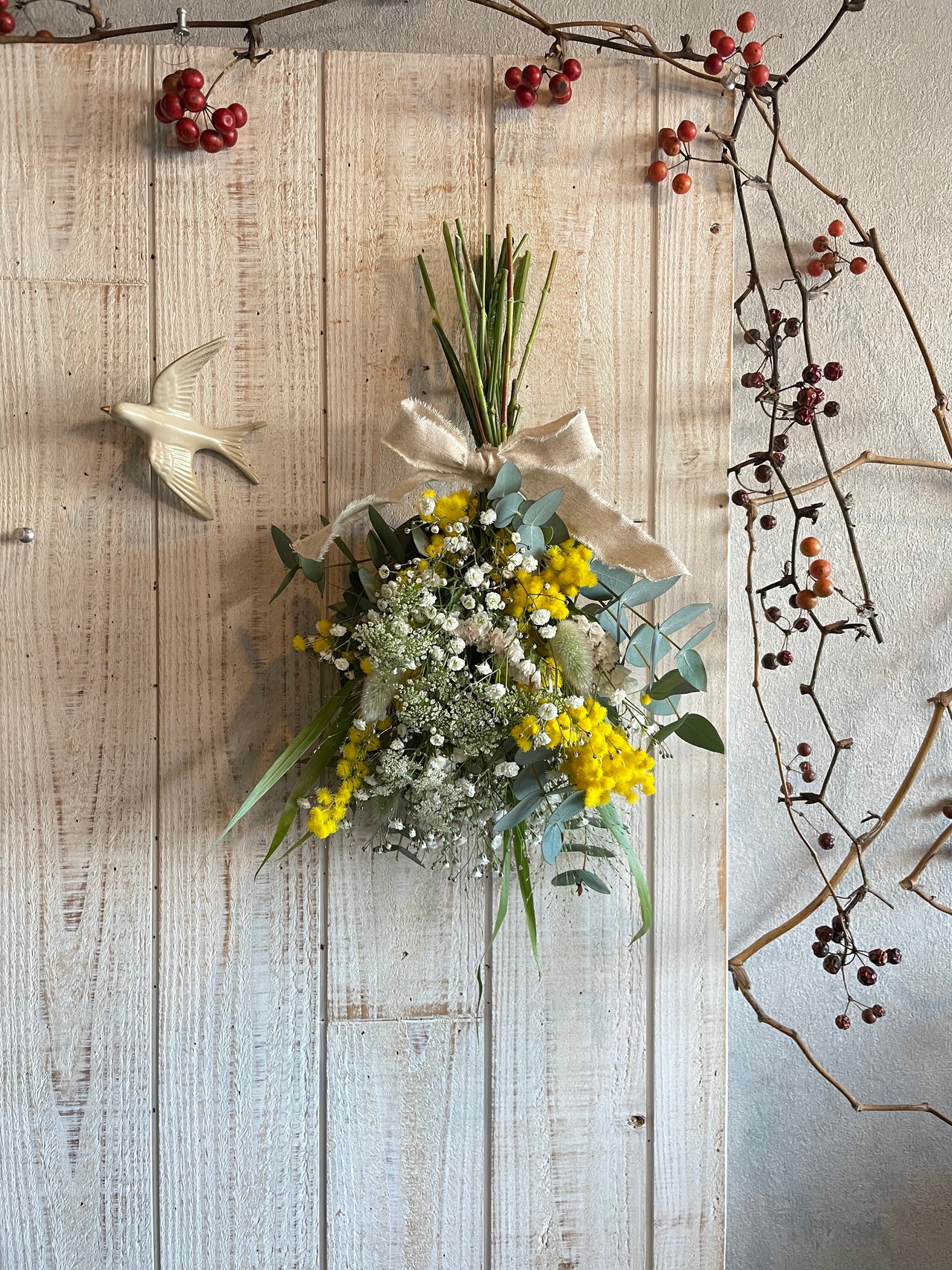 フレッシュのミモザスワッグです。