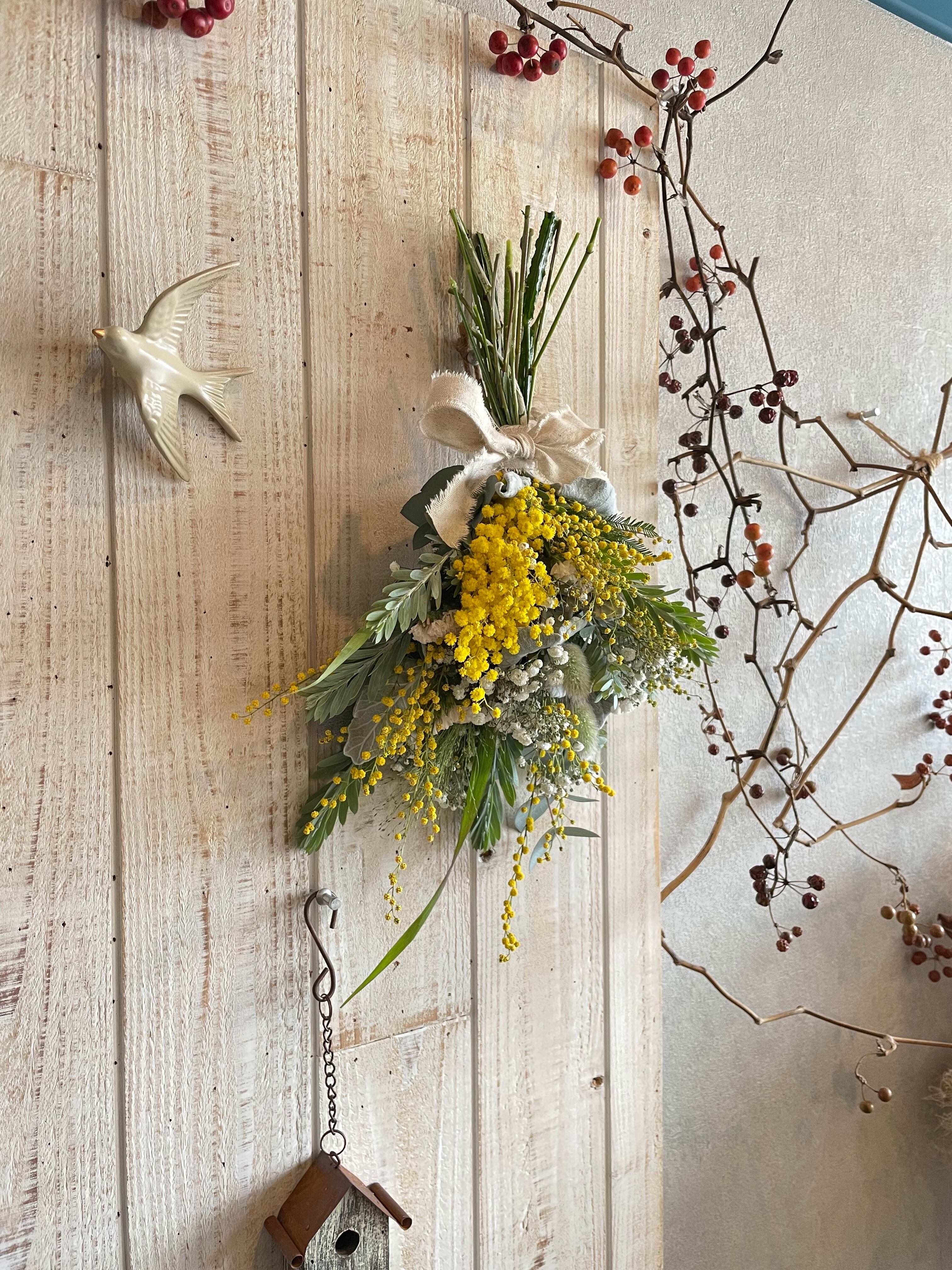 フレッシュのミモザスワッグです。